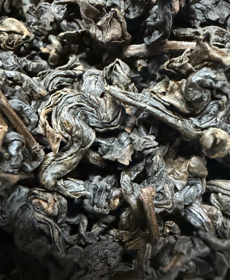 ▲ 茶乾: 外觀勻整蝦形捲,已轉黑褐帶光澤感,具獨特花果香氣!