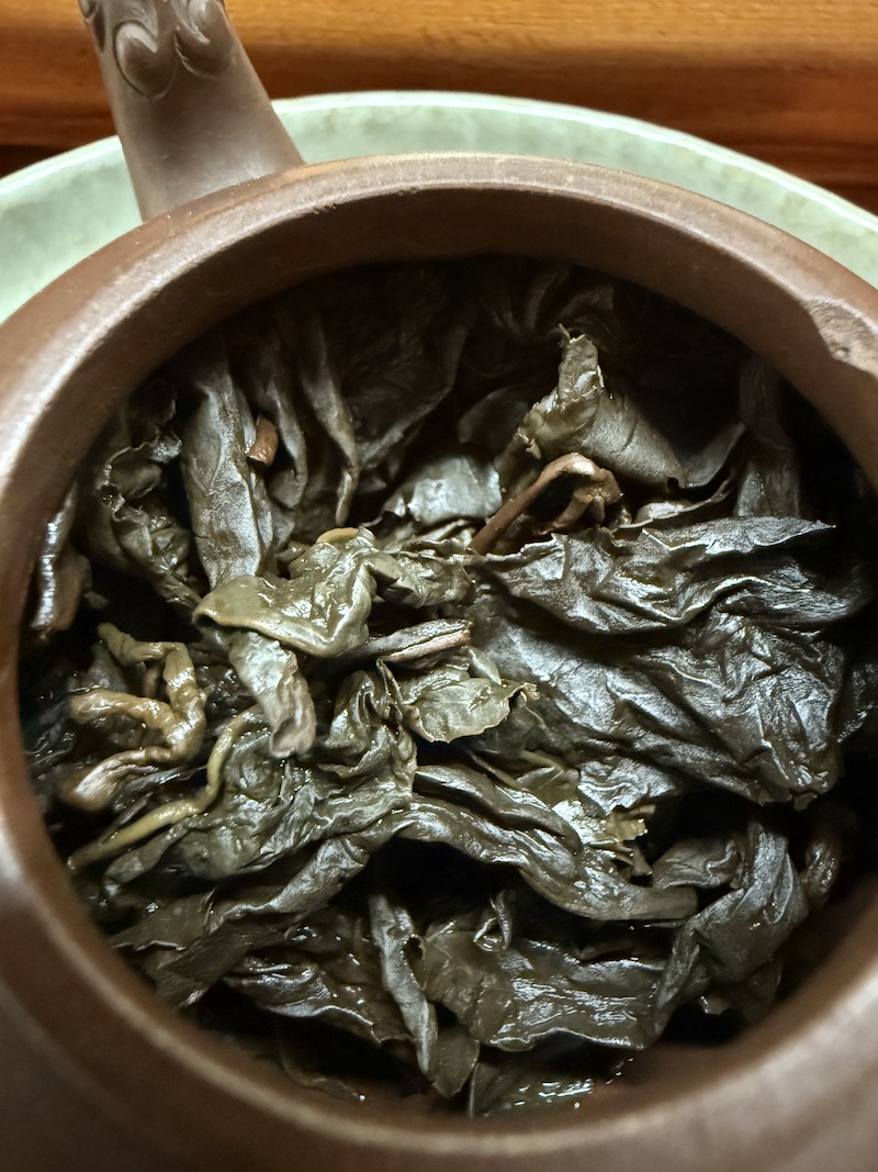 已轉化花果酸香的老茶,這是一款已陳放40年以上的凍頂烏龍老茶,陳年香氣飽足,微微的酸香花果香入口生津,香氣層次很豐富,甘韻醇和,這是一款茶質相當好的陳年凍頂烏龍茶,是早期重發酵凍頂烏龍茶下去存放,不論是現在開喝品飲或是繼續存放轉換都很適合。數量有限,歡迎洽詢049-2671873 曾小姐或美季媽媽